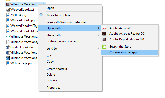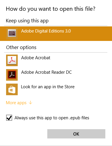Set up your computer to automatically open Adobe Digital Editions for epub files.