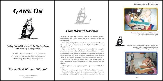 In the ebook version of Game On, only the title page retained its ship. The photographs were each presented on their own page with simple black lines for frames instead of the byte-eating coloured frames in the print book.