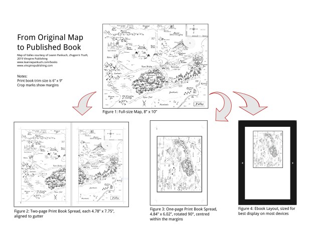 If you click on the image to enlarge it, the crop marks show where the margins lie. The split map in Figure 2 looks great. The full map in Figure 3 has lots of room to spare but to use it up, the map would be distorted.